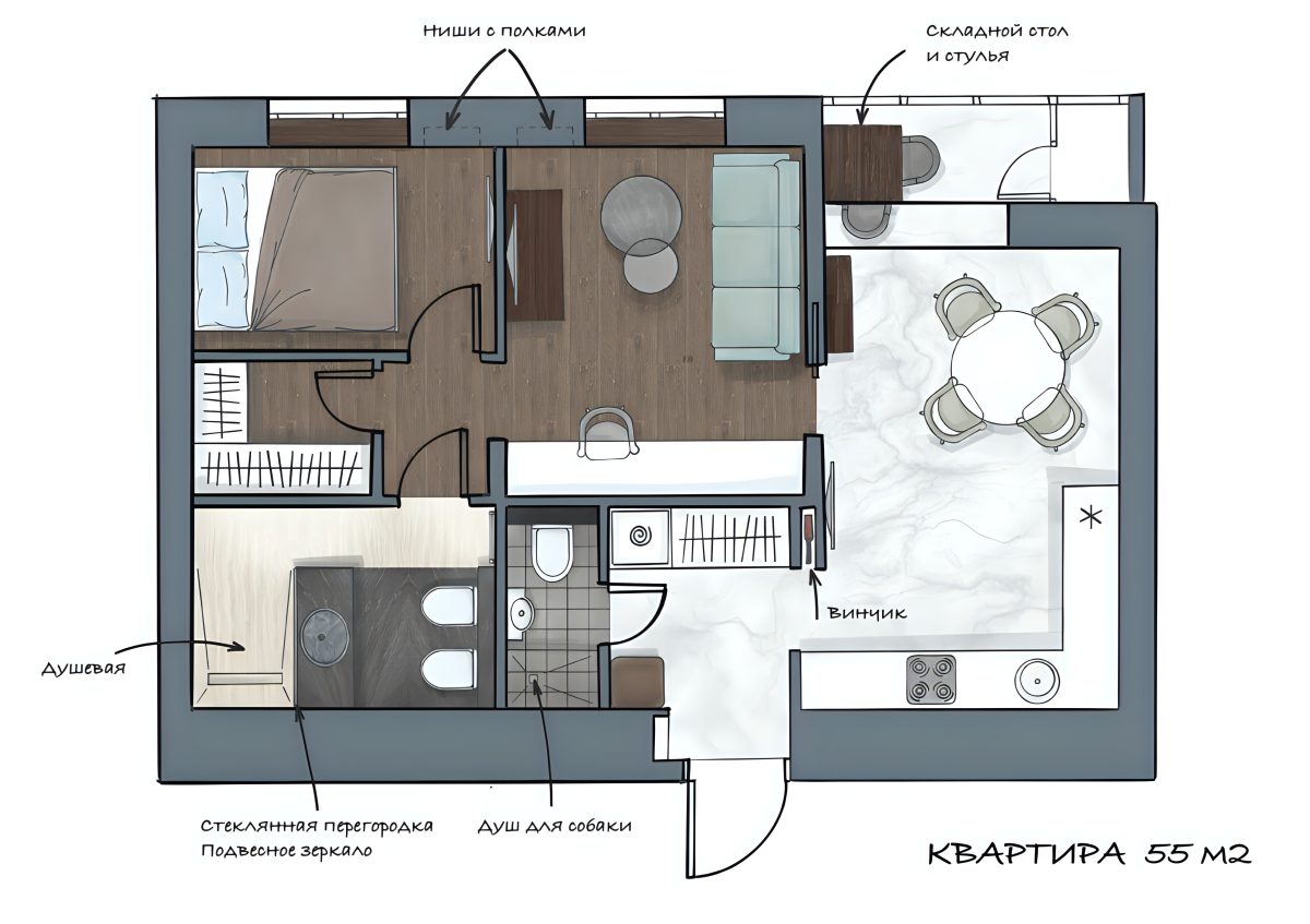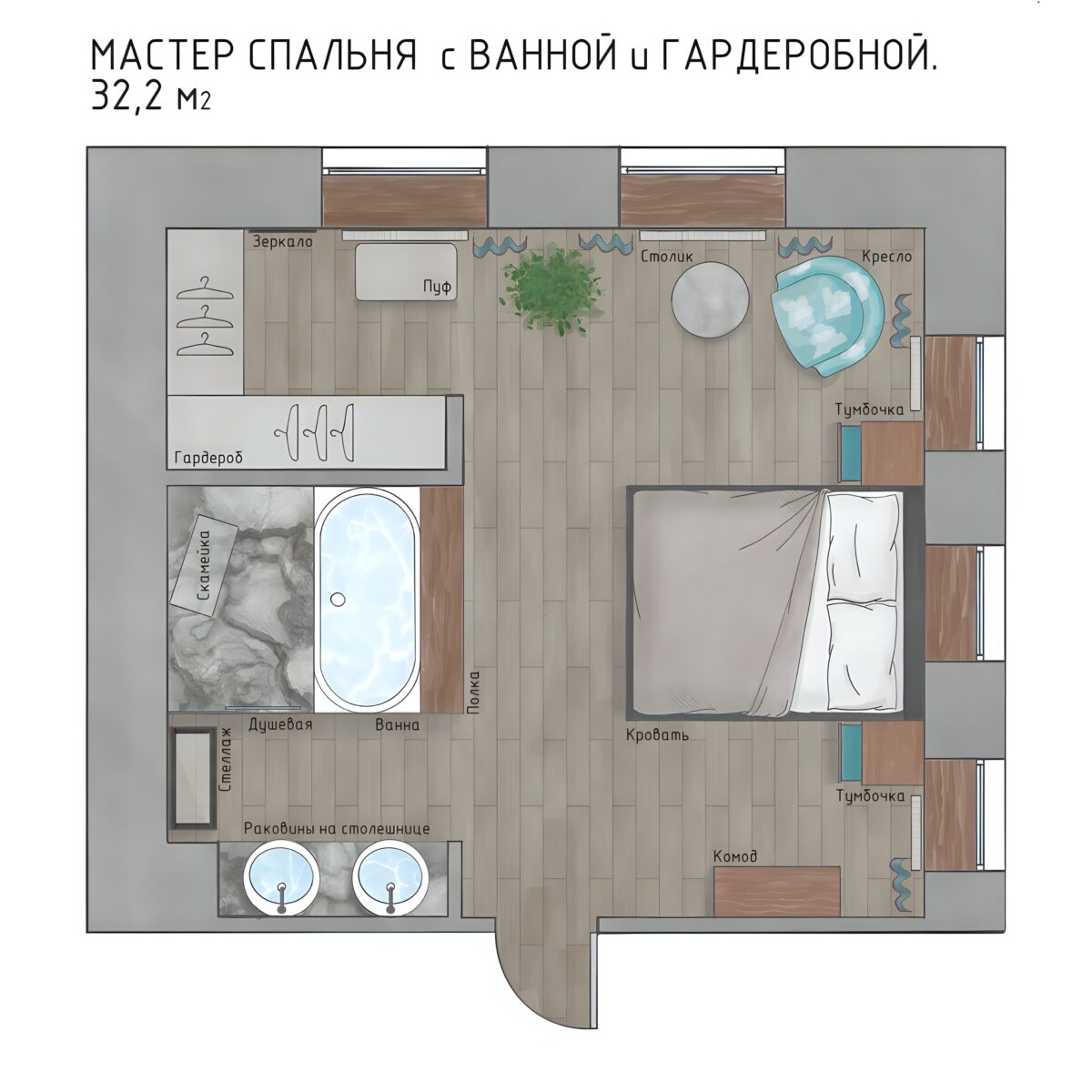 Это план помещения, на котором обозначают функциональные зоны, расположение мебели, сантехники и светильников. Его составляют на основе точных замеров — их узнают из экспликации квартиры и поэтажного плана дома
