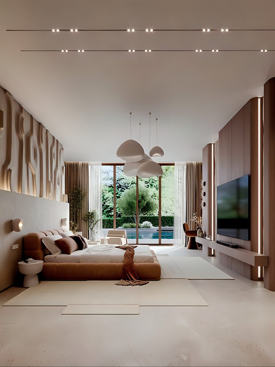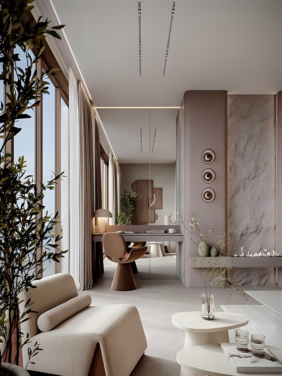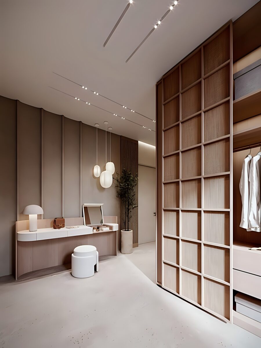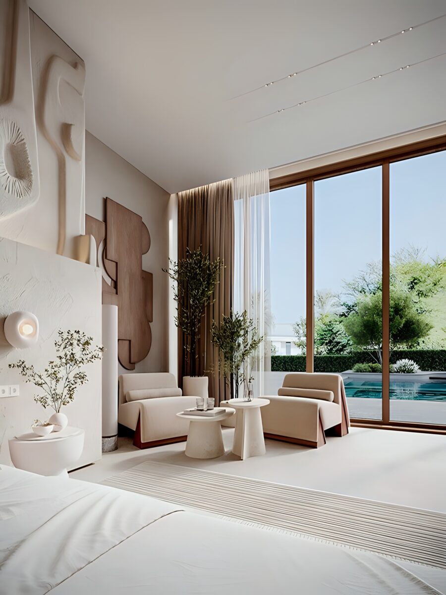 Светлые тона и минималистичный дизайн Japandi помог визуально увеличить пространство, сделать его более легким и воздушным, это особенно важно для гостевого дома, где гости должны чувствовать себя свободно и комфортно.