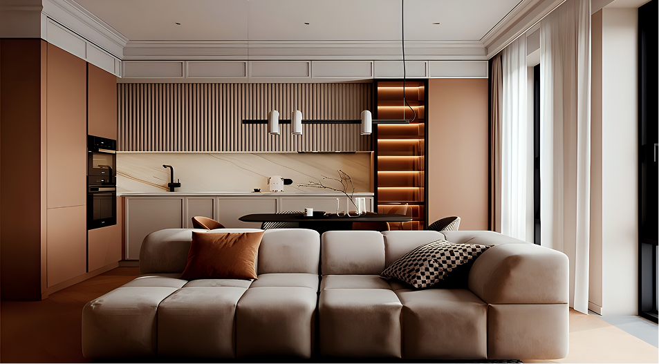 Также мы постарались создать функциональную планировку, которая обеспечивает удобство и комфорт в повседневной жизни, обеспечить достаточное количество естественного и искусственного освещения, которое создает атмосферу открытости и свободы. Интегрировать современные технологии и удобства, которые отвечают вашим потребностям в комфорте и развлечениях. В результате получилась квартира, где можно наслаждаться своим личным пространством, принимать гостей и просто чувствовать себя комфортно и уютно.