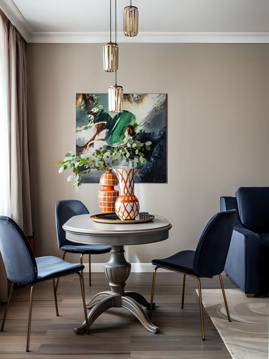 - Подбор отдельных небольших предметов мебели (консоль, пуфик, журнальный столик и т.п.), текстиля, интерьерных украшений, предметов искусства, растений.